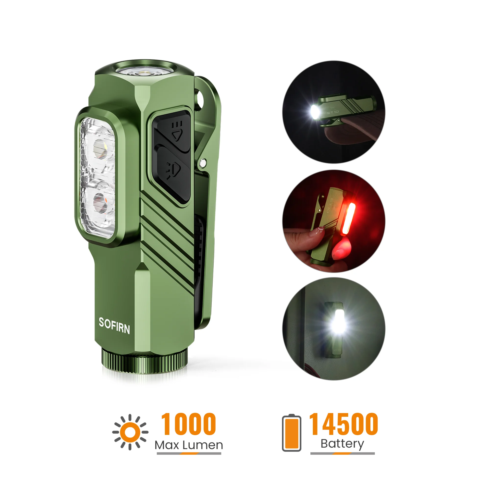 3-in-1 Light Setup : Super bright 1000-lumen main beam for distance, side white light for close-up tasks, plus a red light to protect your night vision—perfect for fishing, night walks, or reading.