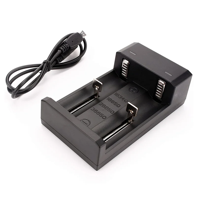 This charger is able to charge 18650, 16340, 14500, 26650,21700 battery Ensure battery is fully charged Charging will turn on red light. Full charge will turn on green light What You Get: USB cable, and 2 slot charger